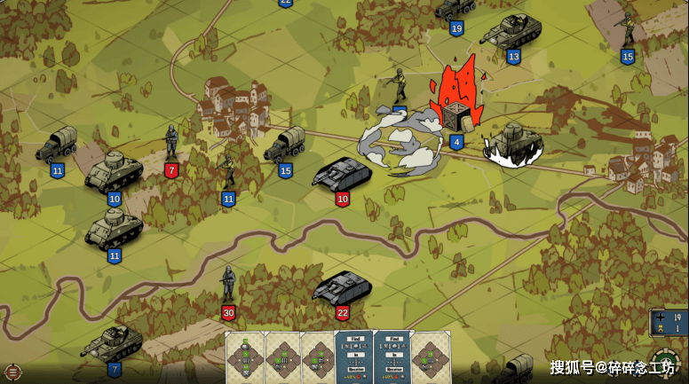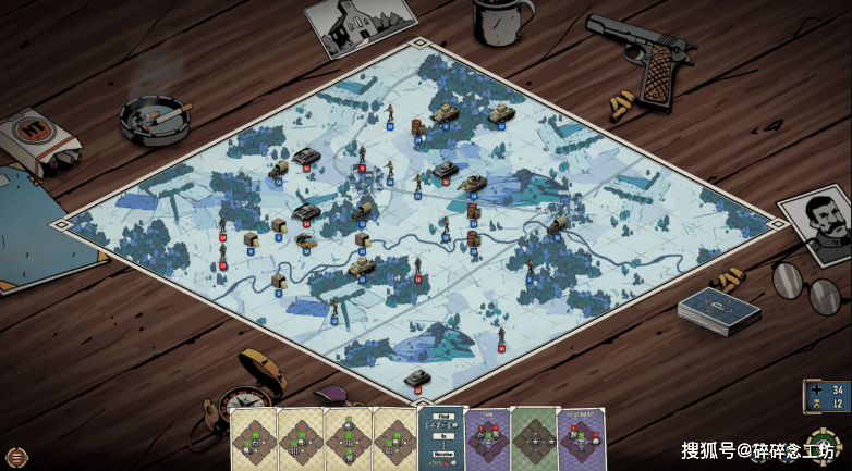 可以说整个布局你中有我,我中有你,彼此牵制。你想让一个地方出现我方的坦克,那可能要在执行这一步之前,就得提前对物资进行调整部署。同时,对于敌方而言也是一样,他也会在战场的各处格子安排自己的物资与战斗单位的部署,如果一个关键点位被占领。就得想办法调动兵力发动局部交火,并且得保证兵力与物资调配能够获胜才行,除此之外作战单位间也还有克制关系。别看游戏的体量不是很大,但在机制上还是非常考验玩家的前瞻性的,也让人能想象出真实战场上,敌我双方的布阵确实不可能一目了然,随心所欲,想干什么干什么。也切实能体会到敌我双方搅在一起的感觉。仔细熟悉下规则,还是挺有意思的。