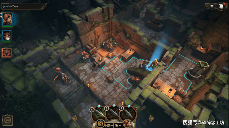 本作一款设定在龙与地下城世界观下的回合制卡牌战棋游戏。玩家可以组建一支囊括了巫师、圣骑士、游侠等职业的冒险队伍展开冒险,同时还加入了诸多桌游感的设计,比如把角色棋子化,游戏的角色无论是移动还是攻击亦或者是开门寻找东西都是以棋子蹦蹦跶跶的形式来完成,看着非常欢乐。