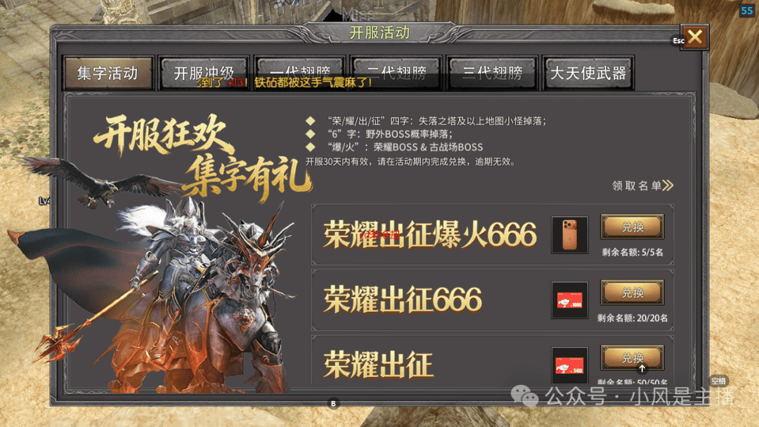 除了集字赢苹果17的重磅活动,《荣耀出征》开服期间更准备了多重福利助力玩家快速成长:新手登录即送豪华礼包,内含海量金币、高阶装备与强化材料;连续在线还能领取限定时装、专属坐骑,让你开局就与众不同;等级冲榜活动同步开启,登顶全服榜单即可获得绝版称号与专属战力加成,彰显荣耀身份!