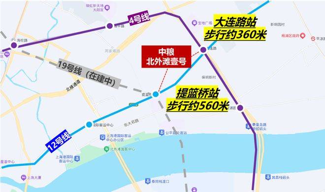自驾上,项目往北约300米就是北横通道,往南车行约1公里,就是新建路隧道和大连路隧道直达浦东。从项目到陆家嘴、北外滩和外滩都在10分钟左右。