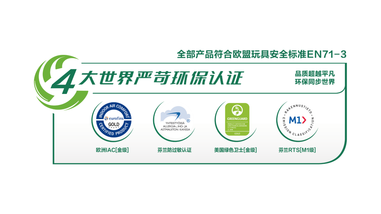 其三,是同步世界的环保标准。聚焦墙面漆的另一个重要属性——环保,这是美巢品牌的基因,也是华彩漆的底线。高举环保的旗帜,华彩全部产品通过了世界四大环保认证最高等级:芬兰RTS M1级、美国UL绿色卫士金级认证、欧陆IAC金级认证、芬兰防过敏认证。更具突破性的是,华彩漆主动对标欧盟玩具安全标准EN71-3,张经甫特别阐释了这一标准的内涵,“这意味着孩子在家中如果用手触摸墙壁,产品即使被幼儿触碰甚至入口也无安全之虞,这是我们给天下母亲的一个承诺”。这份超越国标的自觉,是其环保基因的自然流露。