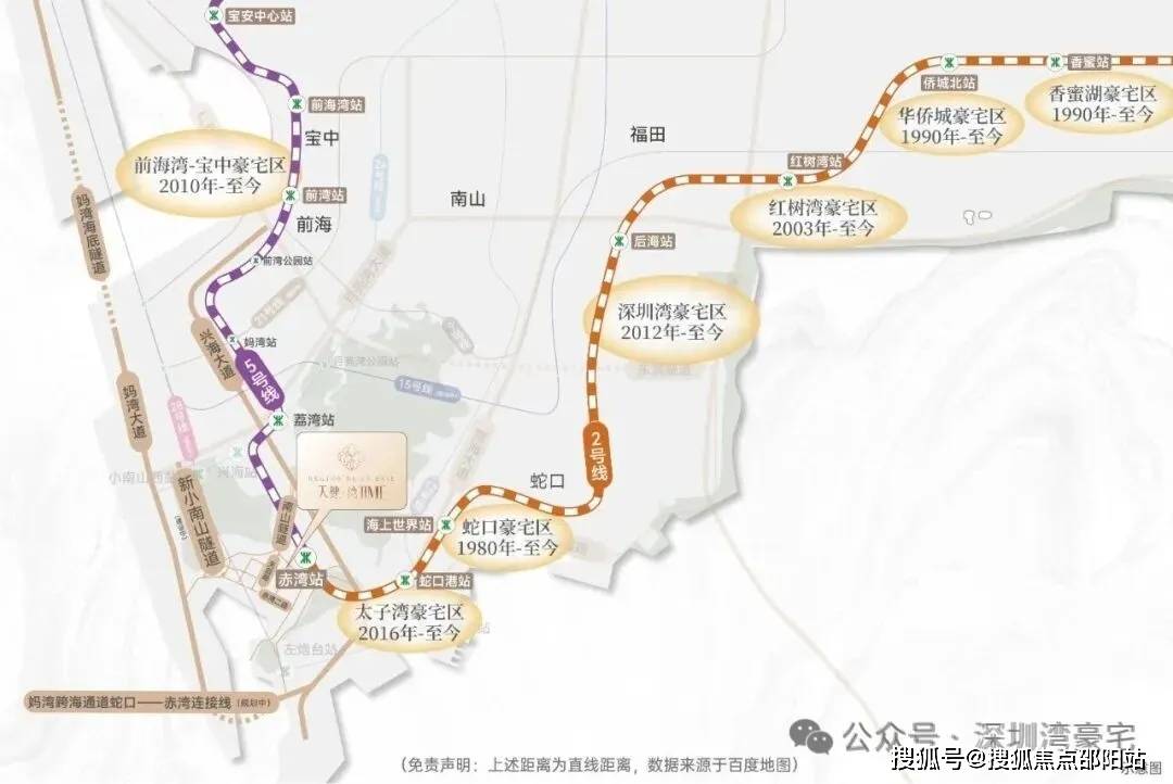 该项目紧邻赤湾站约400米,这是2号线号线的交汇站,通过此站可以便捷地到达前海、宝中、蛇口以及深圳湾等深圳核心区域。项目2公里范围内还有正在建设的12号线左炮台站,并且规划有未来的地铁28号线。此外,项目通过小南山隧道或港航路可以快速连接到兴海大道,从而连通前海、后海、宝中等重要区域,交通条件十分便利。