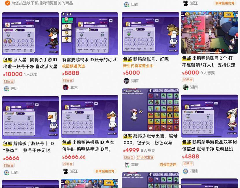 更值得警惕的是,这款手游从公测之初就暴露出诸多问题。惊蛰研究所观察到,《鹅鸭杀》手游公测首日便出现“天价ID”的现象,闲鱼平台的挂单价区间从1元跨度至万元不等。另外,一款名为“中学校服鸭”的角色装扮,因为给动物加上了明显的人类女性特征,也延伸出接连引发玩家争议的“建模问题”。而这些伴随游戏大火出现的种种乱象,无疑在社交媒体的舆论层面为游戏的持续扩圈造成了显著障碍。如果处理不当,即便《鹅鸭杀》迎来第二次热度爆发,恐怕也只是转瞬即逝的烟火,难以实现长效发展。