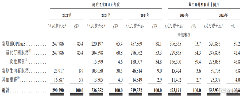 其中,云游戏行业是公司的主要收入来源。报告期内,云游戏GPUaaS分别占公司收入的85.4%、65.4%、88.1%、89.2%。